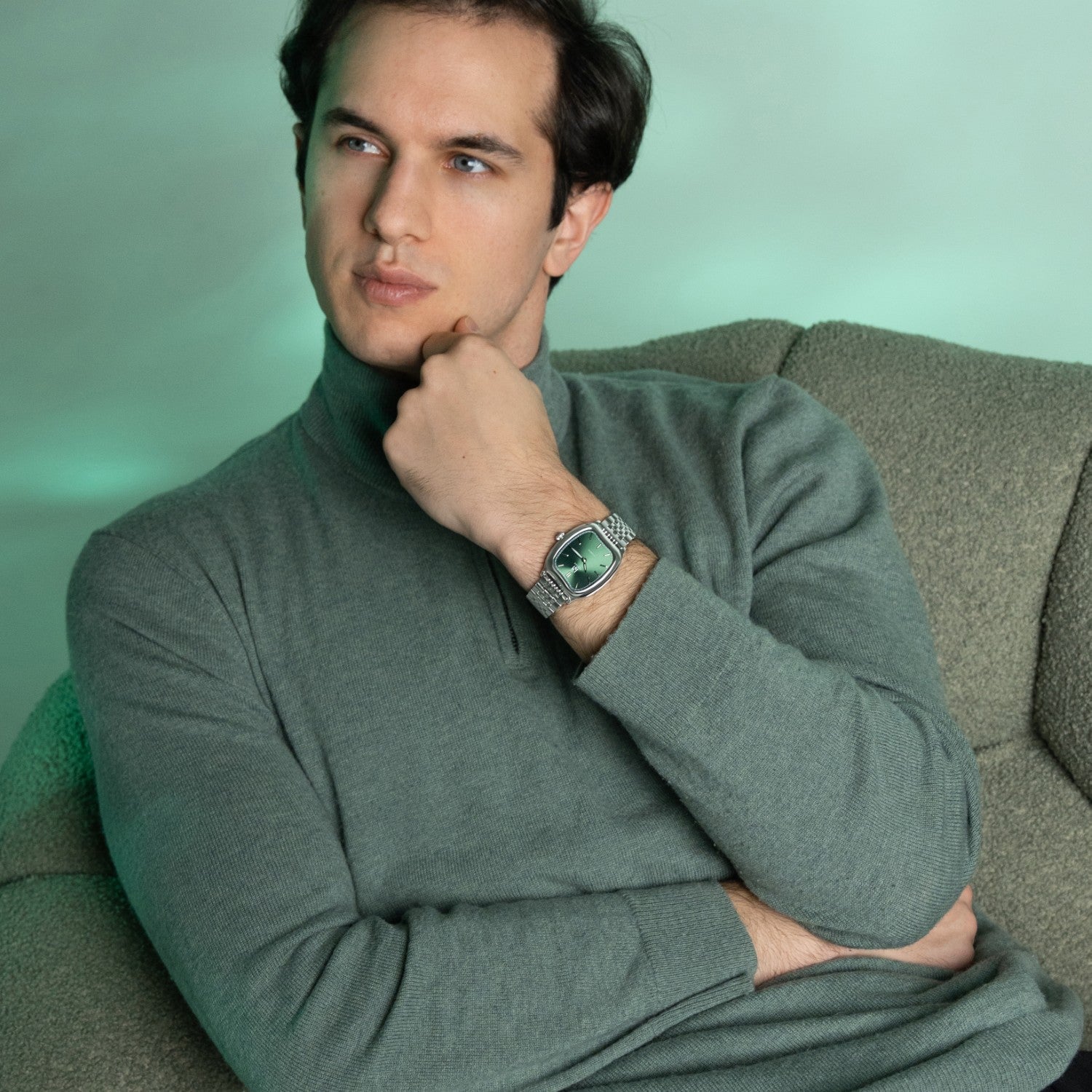 Three Looks. One Watch. Every VERDANT is designed for effortless transition. Alongside the 7-piece articulated bracelet, you'll find two premium leather straps: a classic black alligator-embossed strap for high-luxury formality, and a forest green leather strap that draws the living pigment of the dial directly onto the wrist.