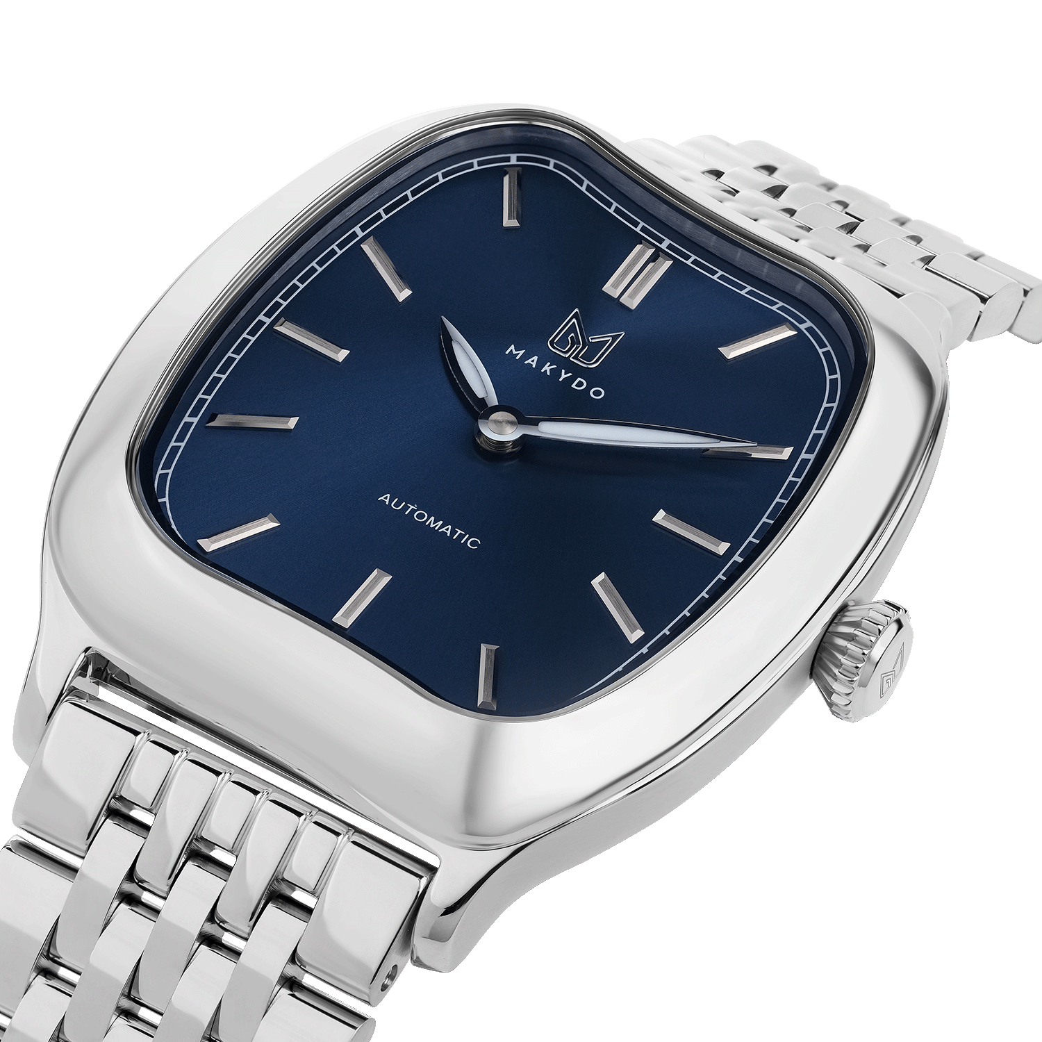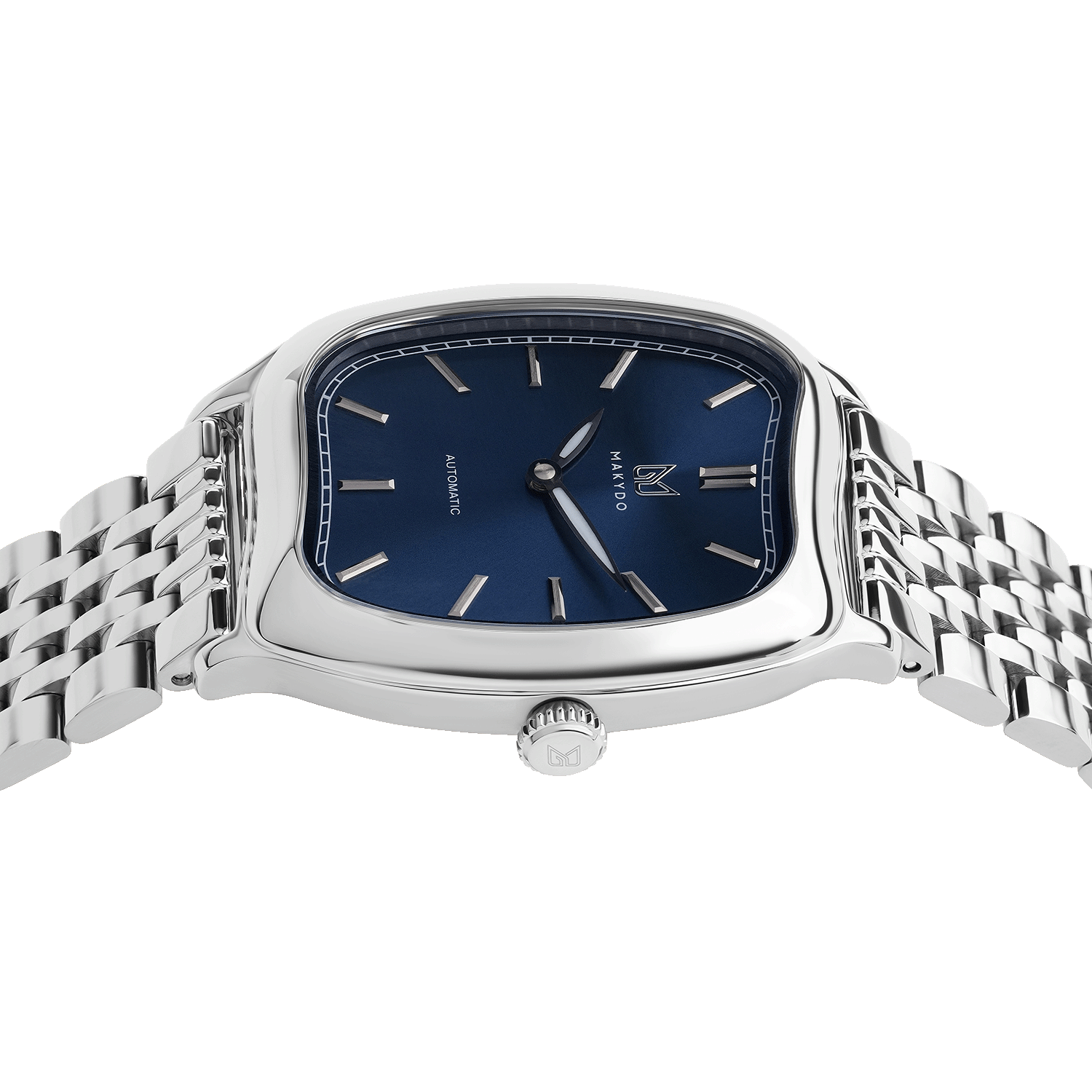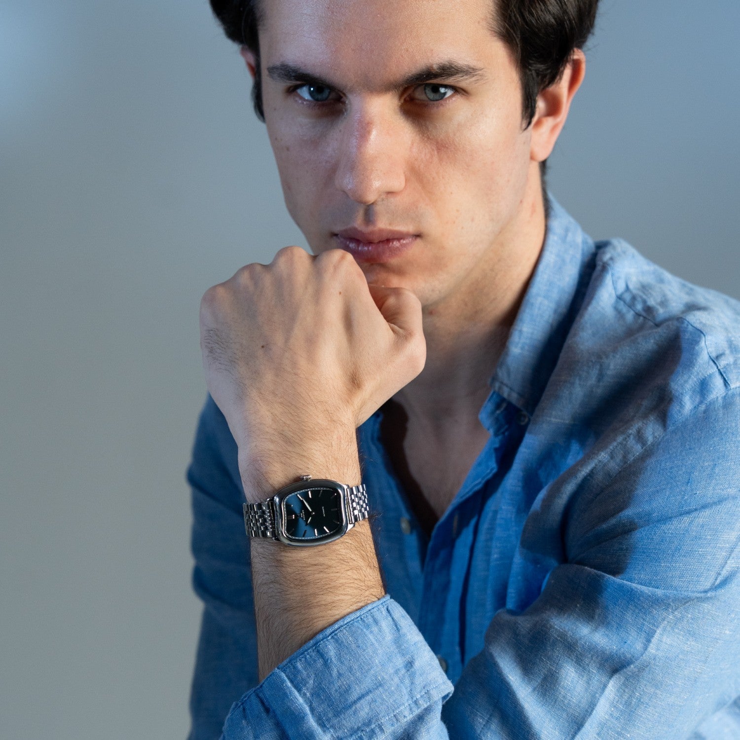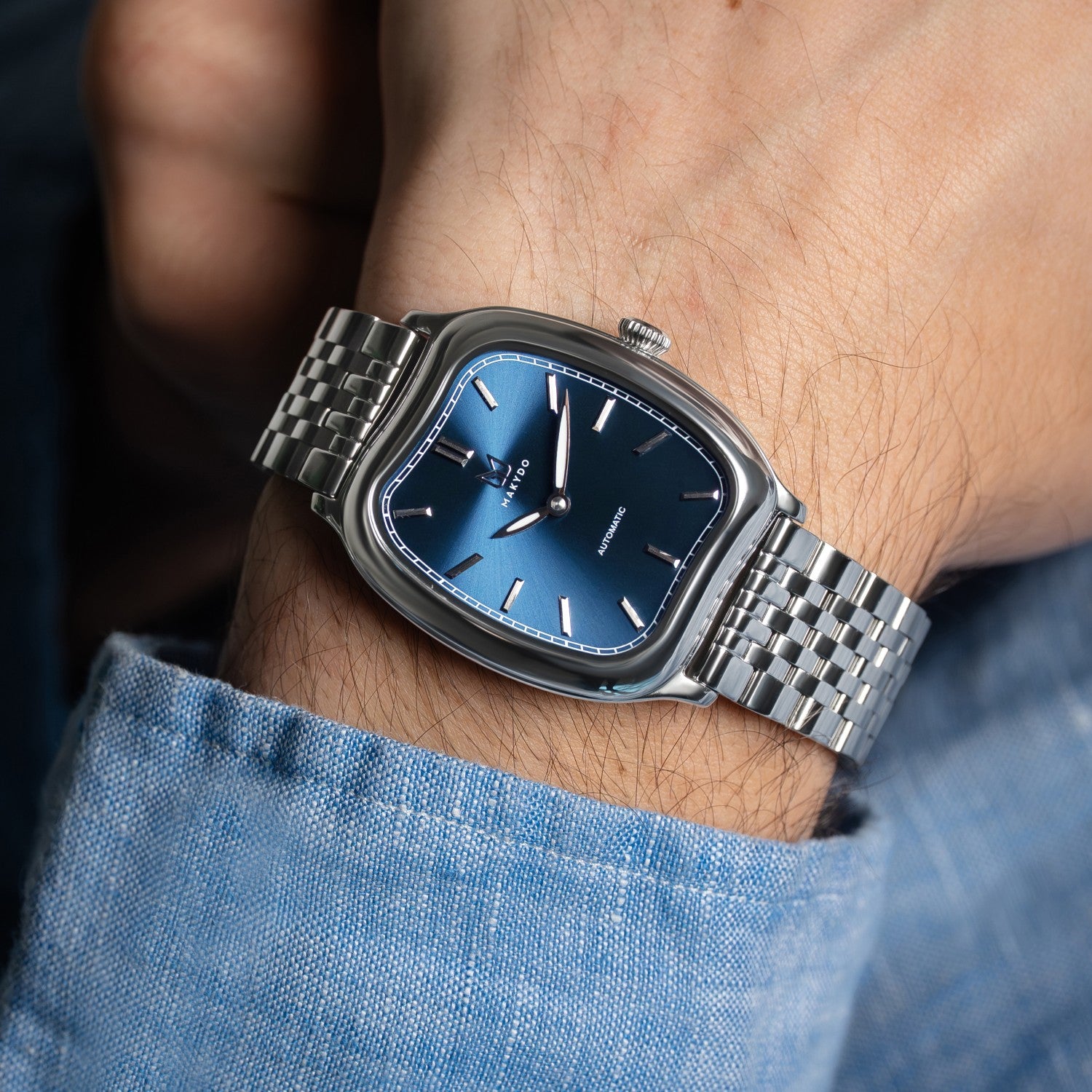 The Contour Silhouette. The asymmetric 37mm case breaks from traditional watch symmetry, creating a sculptural form and instantly distinctive.